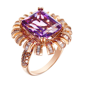 Кольцо из красного золота 585 пробы с аметистом, бриллиантами. Наличие размеров просим уточнять у менеджеров по телефону, указанному на сайте.