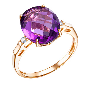 Кольцо из красного золота 585 пробы с аметистом, бриллиантами. Наличие размеров просим уточнять у менеджеров по телефону, указанному на сайте.