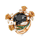 Кольцо из красного золота с сапфирами, тсаворитом, эмалью и агатом