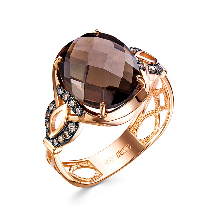 Кольцо из красного золота с бриллиантами, раухтопазом