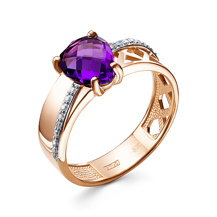Кольцо из красного золота с аметистом, бриллиантами