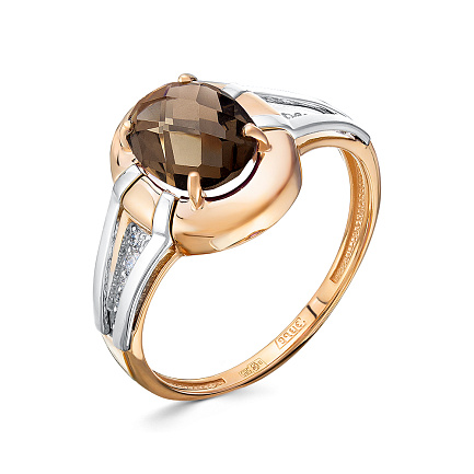 Кольцо из комбинированного золота с бриллиантами, раухтопазом