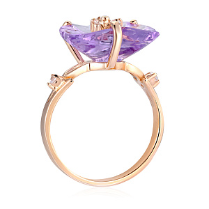 Кольцо из красного золота с горным хрусталём