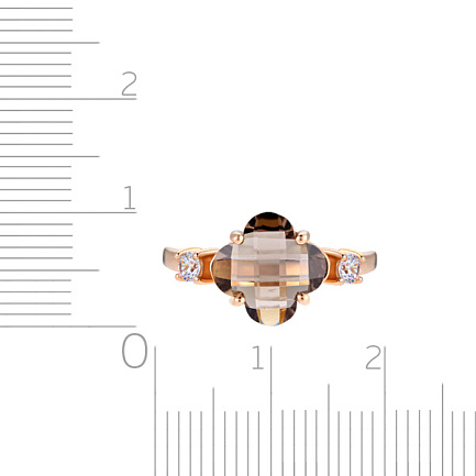 Кольцо из красного золота с раухтопазом, фианитами