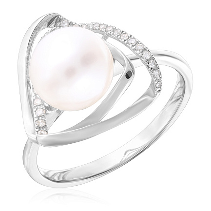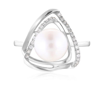 Кольцо из белого золота с бриллиантами, жемчугом