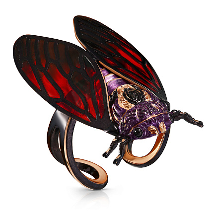 Кольцо из красного золота с сапфиром, эмалью