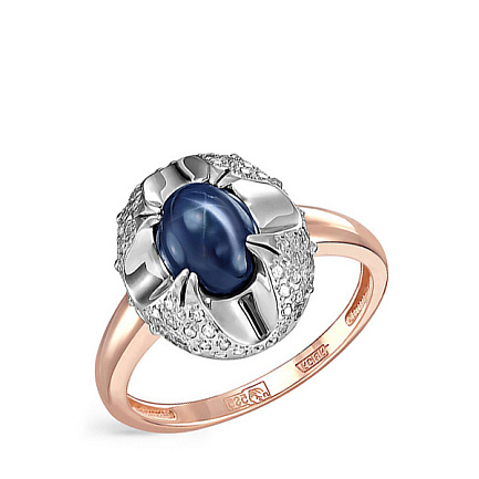 Кольцо из красного золота с бриллиантами, сапфиром