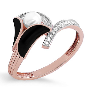Кольцо из красного золота с бриллиантами, жемчугом