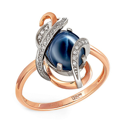 Кольцо из красного золота с бриллиантами, сапфиром
