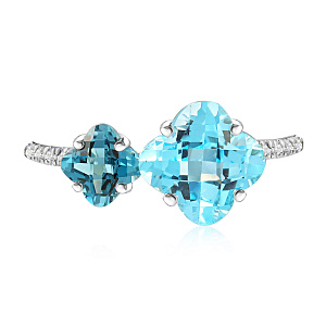 Кольцо из белого золота с бриллиантами, топазом