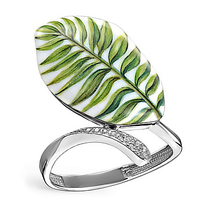 Кольцо из белого золота с бриллиантами, финифтью