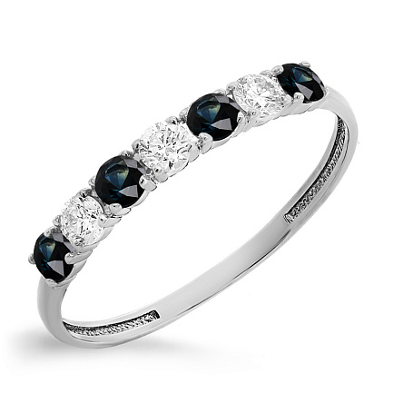 Кольцо из белого золота с сапфирами, бриллиантами