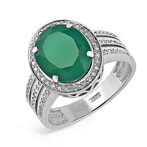 Кольцо из белого золота с бриллиантами, ониксом