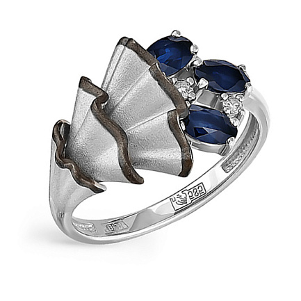 Кольцо из белого золота с сапфирами, бриллиантами