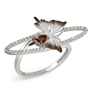Кольцо из белого золота с раухтопазом, бриллиантами