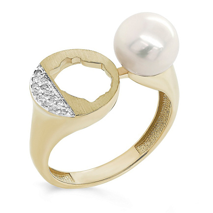 Кольцо из желтого золота с бриллиантами, жемчугом