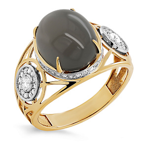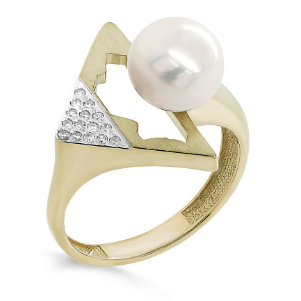 Кольцо из желтого золота с бриллиантами, жемчугом