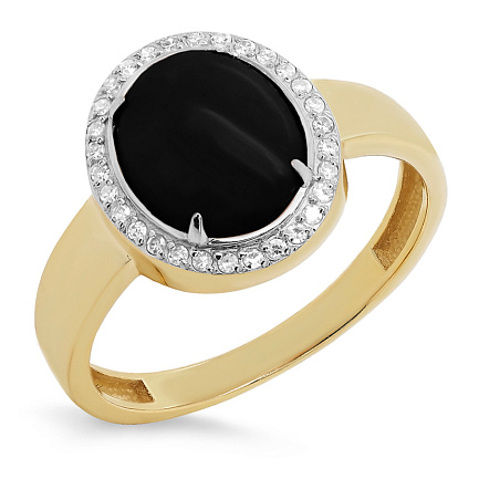 Кольцо из желтого золота с бриллиантами, ониксом