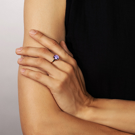 Кольцо из желтого золота с аметистом