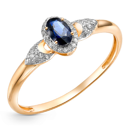 Кольцо из красного золота с бриллиантами, сапфиром