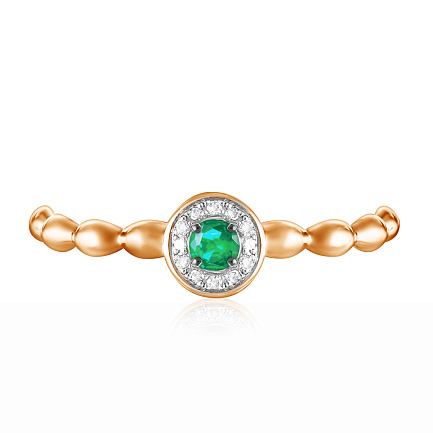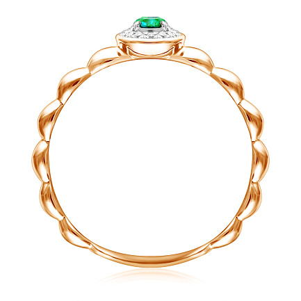Кольцо из красного золота с бриллиантами, изумрудом