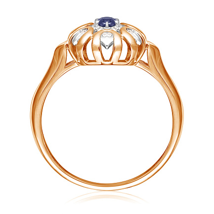 Кольцо из красного золота с сапфиром, бриллиантами