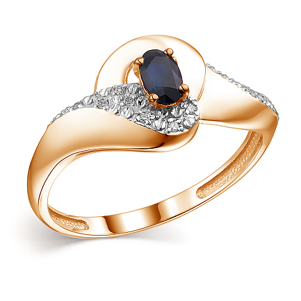 Кольцо из красного золота с бриллиантами, сапфиром