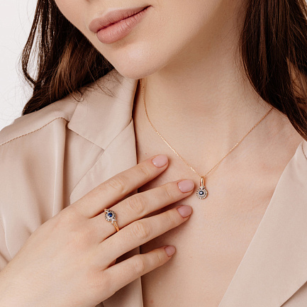 Кольцо из красного золота с сапфиром