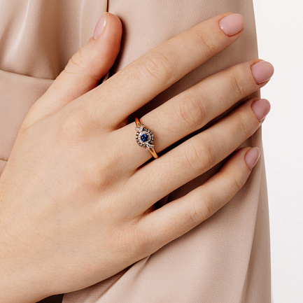 Кольцо из красного золота с бриллиантами, сапфиром