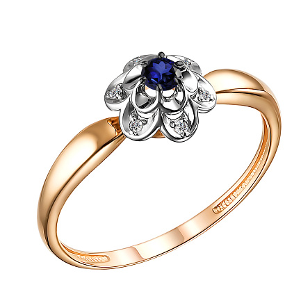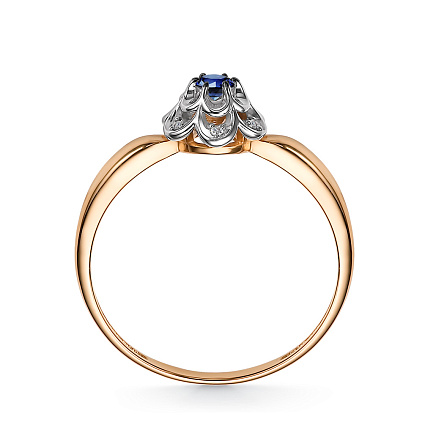 Кольцо из красного золота с бриллиантами, сапфиром
