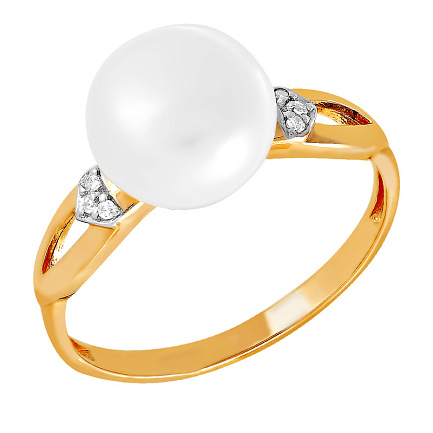 Кольцо из красного золота с жемчугом, фианитом
