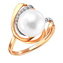 Кольцо из красного золота с жемчугом, фианитом