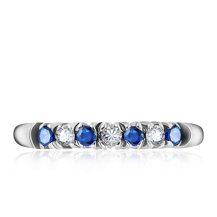 Кольцо из белого золота с бриллиантами, сапфирами