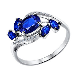 Кольцо из белого золота с бриллиантами, сапфиром