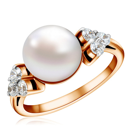Кольцо из красного золота с жемчугом, фианитами Сваровски