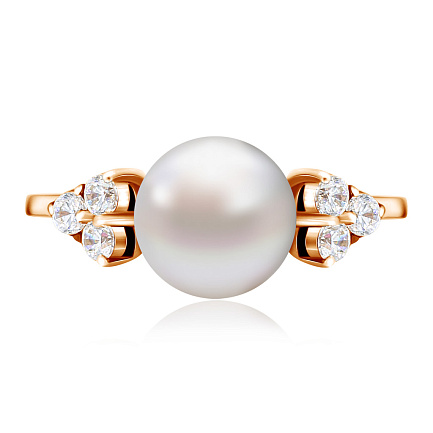 Кольцо из золота с жемчугом и фианитами