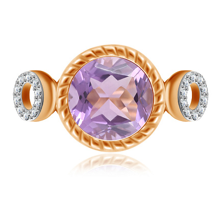 Кольцо из красного золота с аметистом, фианитами Сваровски