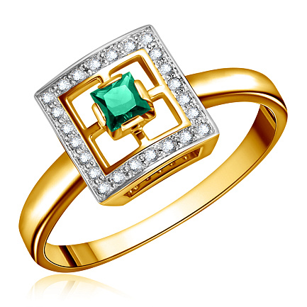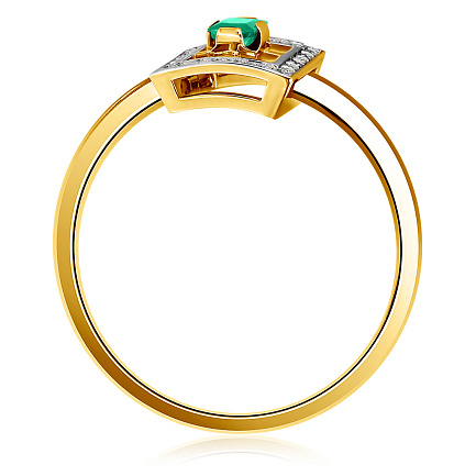 Кольцо из желтого золота с бриллиантами, изумрудом