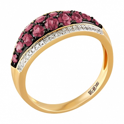 Кольцо из красного золота с бриллиантами, рубинами