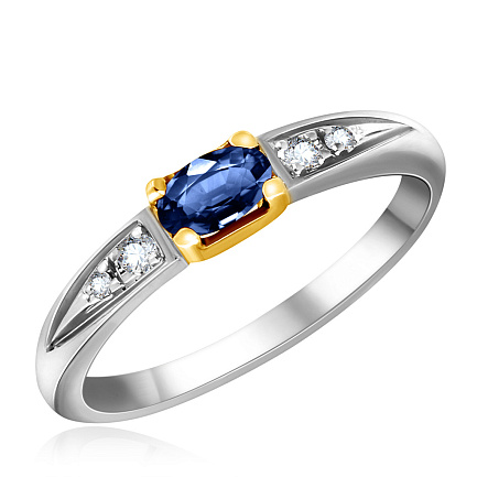 Кольцо из желтого золота с бриллиантами, сапфиром