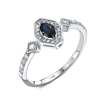 Кольцо из белого золота с бриллиантами и сапфиром