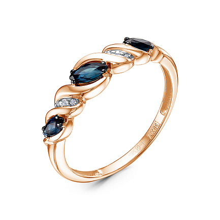 Кольцо из красного золота с бриллиантами, сапфирами
