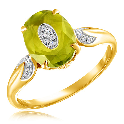 Уникальная технология создание этого золотого кольца заключается в закреплении вставки из бриллиантов в камень-основу – хризолит. Хризолит издавна считался камнем адвокатов, помогающий завоевать симпатию и расположение людей, добиться правды.