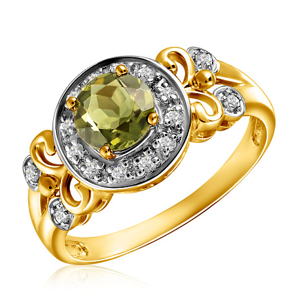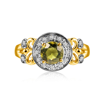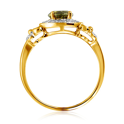 Кольцо из желтого золота с молдавитом