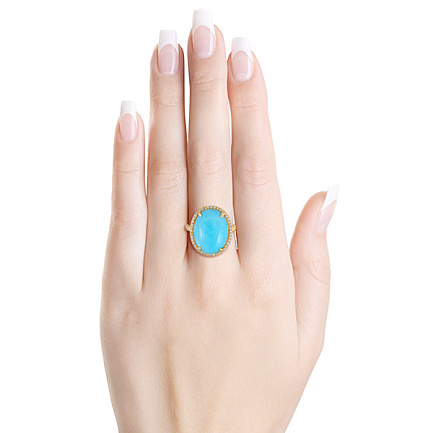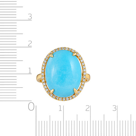 Кольцо из желтого золота с бриллиантами, бирюзой