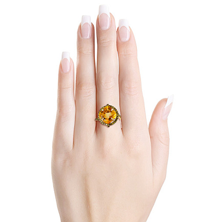 Кольцо из желтого золота с бриллиантами, цитрином