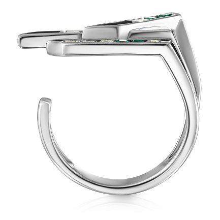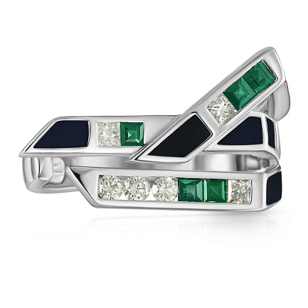Кольцо из белого золота с изумрудами, эмалью, бриллиантами