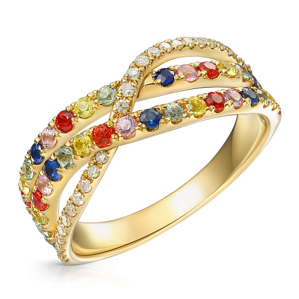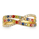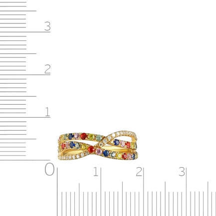 Кольцо из желтого золота с бриллиантами, сапфирами