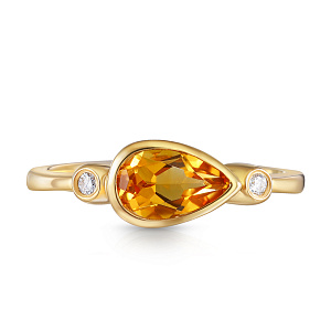 Кольцо из желтого золота с бриллиантами и хризолитом