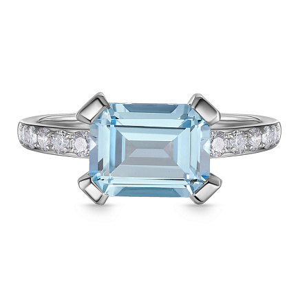 Кольцо из белого золота с топазом и бриллиантами